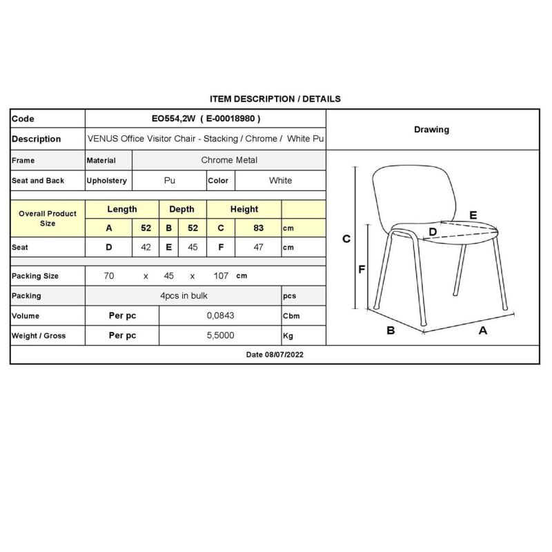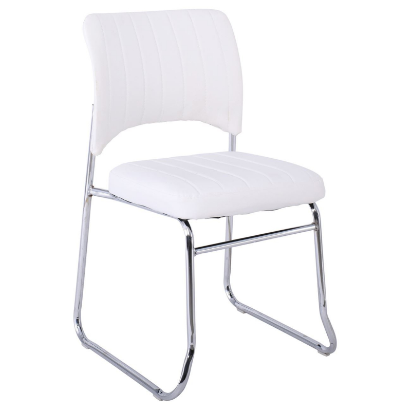 VENUS Καρέκλα Γραφείου Επισκέπτη, Στοιβαζόμενη Μέταλλο Χρώμιο, Pu Άσπρο 52x52x83cm