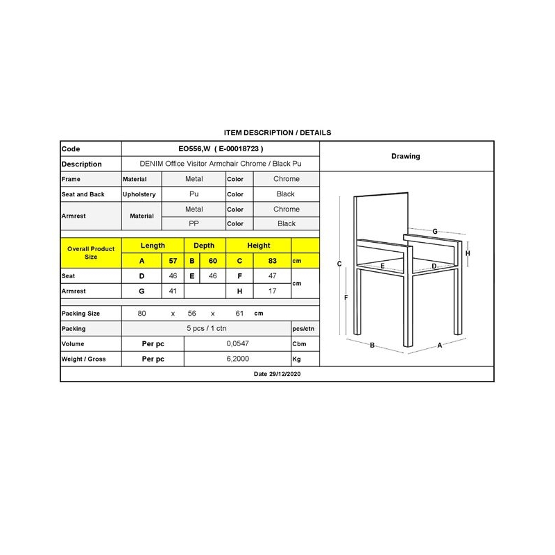 DENIM Πολυθρόνα Γραφείου Επισκέπτη Χρώμιο, Pu Μαύρο 57x60x83cm