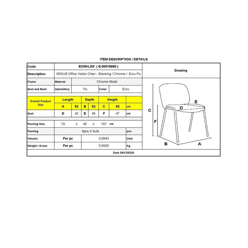Καρέκλα επισκέπτη στοιβαζόμενη Nioze pakoworld μαύρο pu-πόδι χρωμίου 57x50x95εκ
