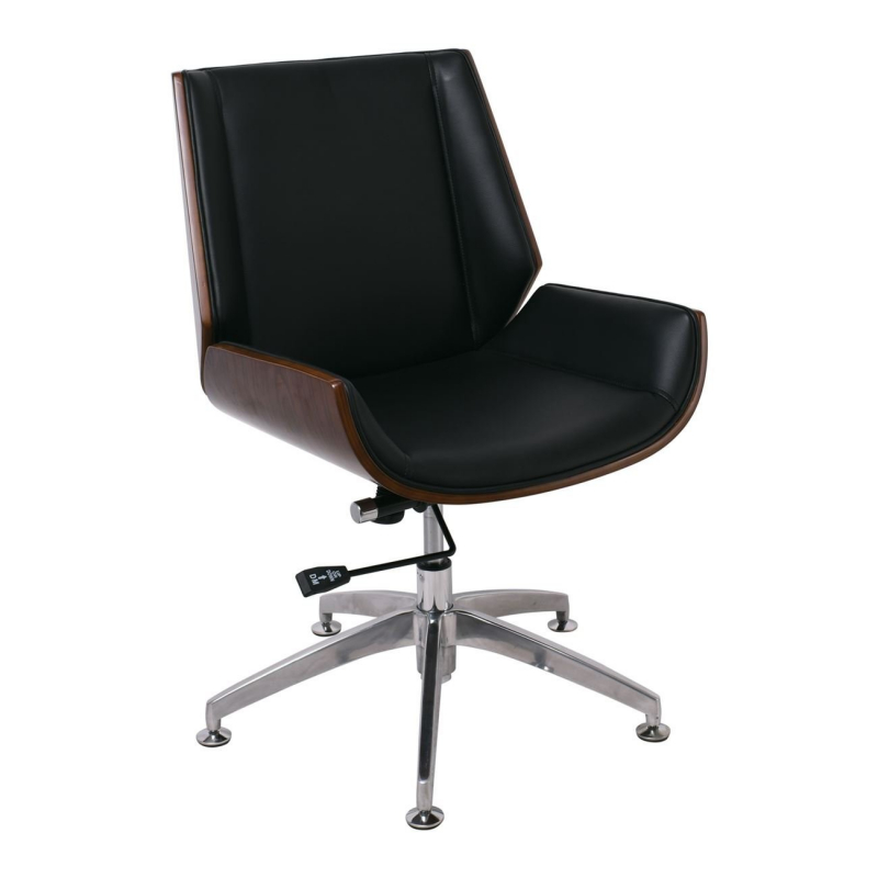 BF9860V Πολυθρόνα Επισκέπτη Μέταλλο Χρώμιο Καρυδί - Pu Μαύρο 65x66x82/90cm
