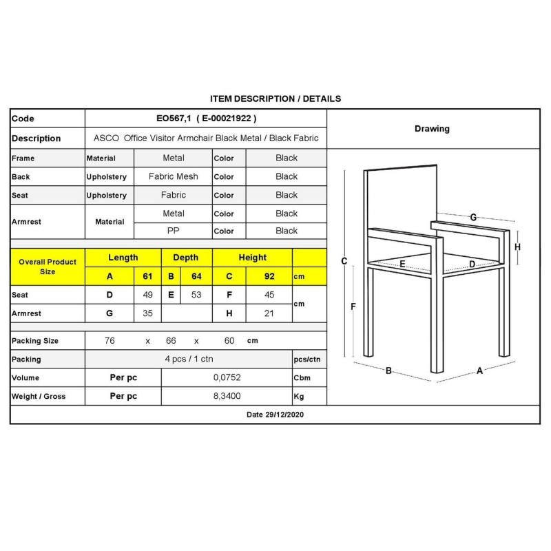 ASCO Πολυθρόνα Γραφείου Επισκέπτη Μέταλλο Βαφή Μαύρο, Mesh - Ύφασμα Μαύρο 61x64x92cm