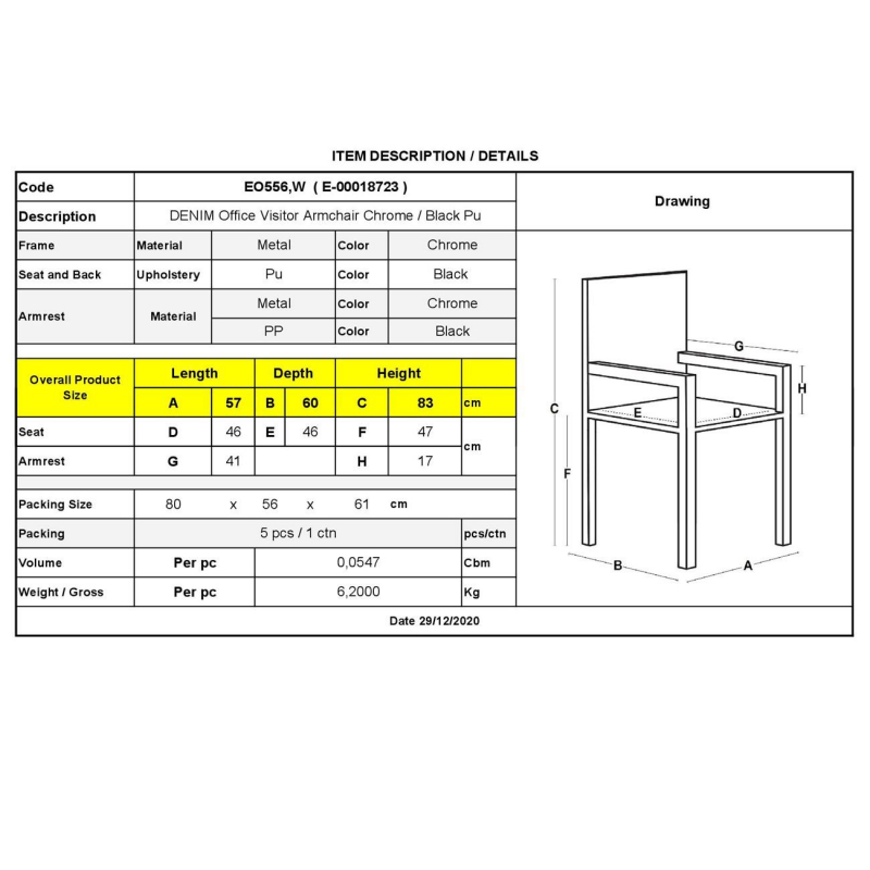 DENIM Πολυθρόνα Γραφείου Επισκέπτη Χρώμιο, Pu Μαύρο 57x60x83cm