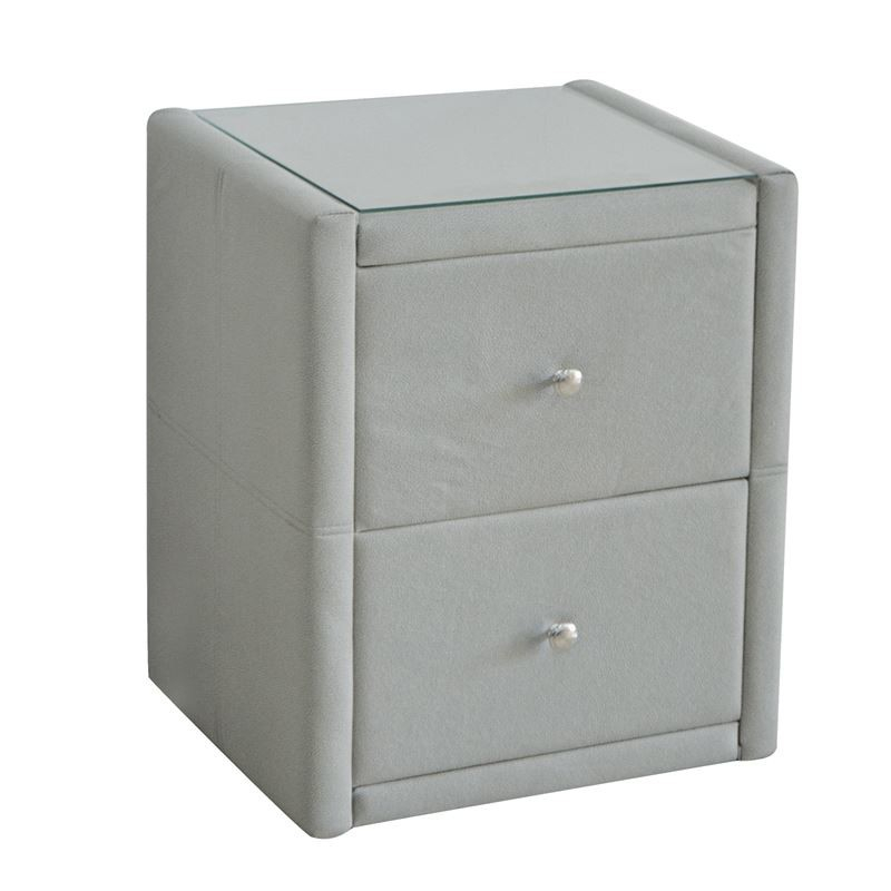 WILTON Κομοδίνο Ύφασμα Grey Stone με Προστατευτικό Γυαλί Επιφάνειας 46x41x57cm
