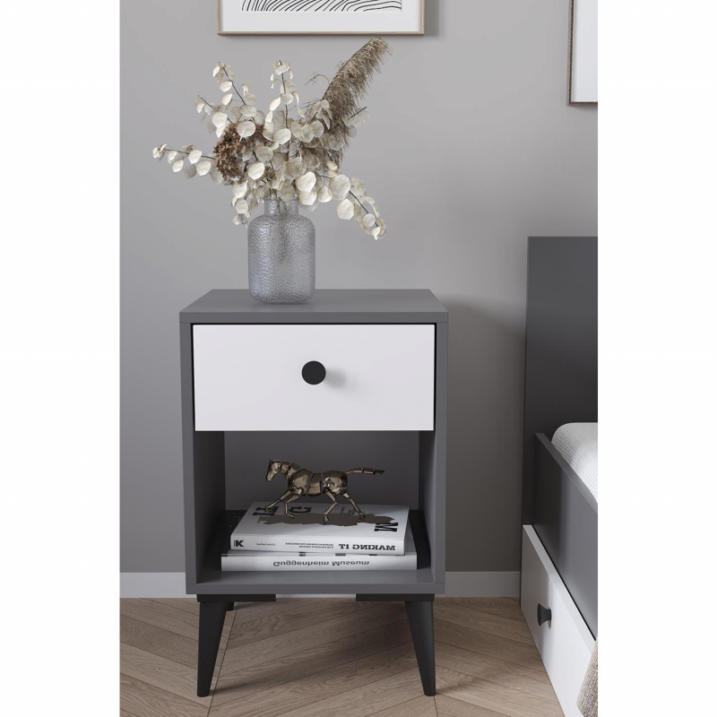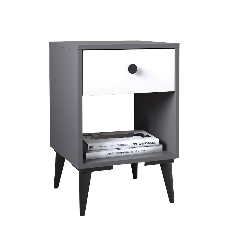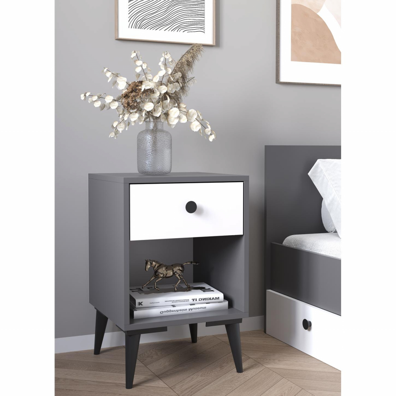 Κομοδίνο με συρτάρι Marcole pakoworld ξύλο σε καρυδί απόχρωση-μαύρο μέταλλο 45x33x58εκ