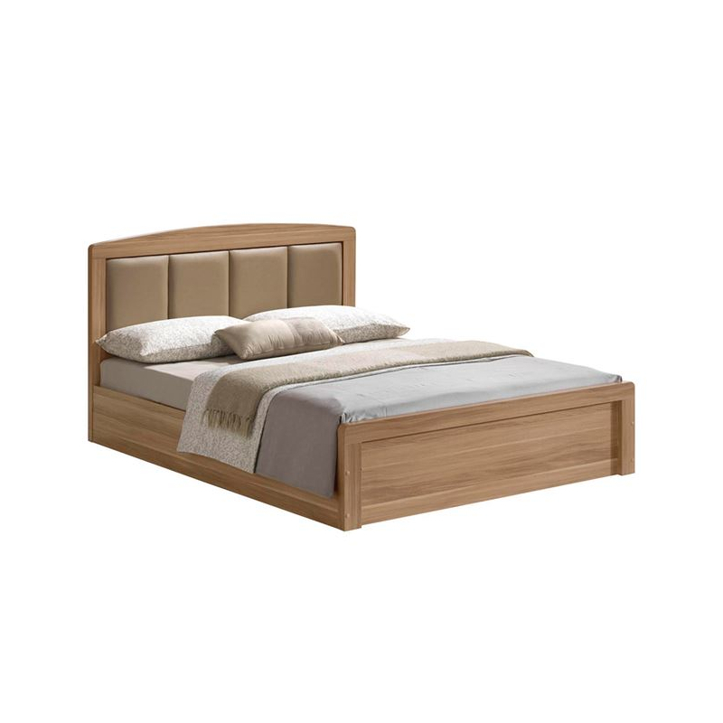 CALIBER Κρεβάτι Διπλό για Στρώμα 160x200cm, Απόχρωση Sonoma Oak, Κεφαλάρι Pu Μπεζ 168x210x100cm