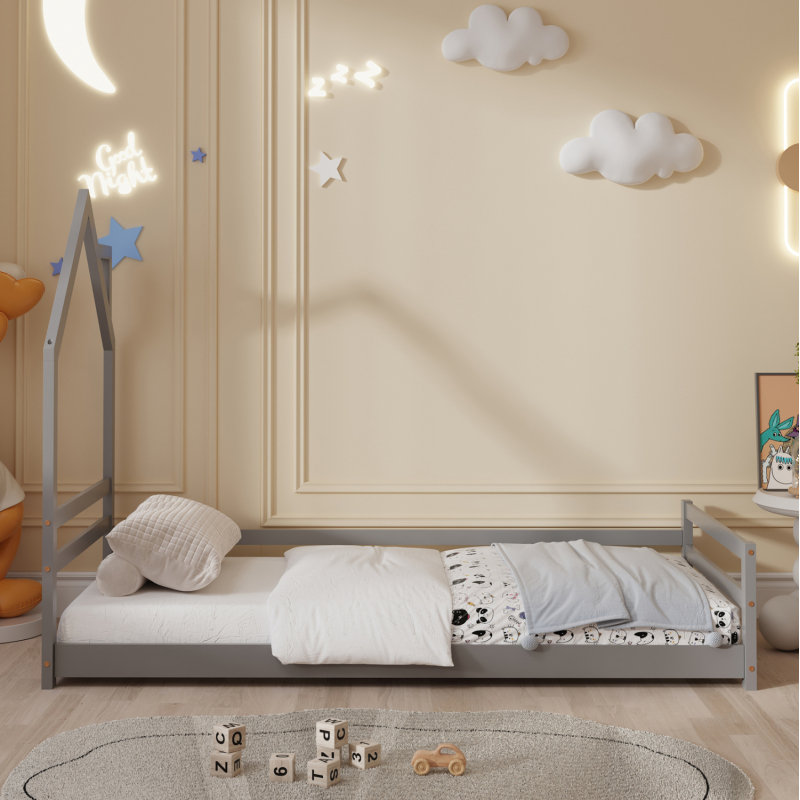 Σας παρουσιάζουμε το καινούργιο παιδικό κρεβάτι HOUSER. Είναι σε διάσταση για μονό στρώμα 90x190 εκ, και αποτελεί μια άριστης ποιότητας, κλασική και ασφαλή επιλογή για το παιδικό δωμάτιο μιας και είναι τύπου Montessori, που σημαίνει ότι έχει σχεδιαστεί σύμφωνα με το εκπαιδευτικό σύστημα Montessori, σύμφωνα με το οποίο τα παιδιά μαθαίνουν καλύτερα, όταν επιλέγουν μόνα τους τι θα κάνουν. Το χαμηλό ύψος κρεβατιού χωρίς πόδια, βοηθά να εξερευνούν την αυτονομία τους και να ανεβοκατεβαίνουν από το κρεβάτι τους ελεύθερα ανά πάσα στιγμή. Είναι ξύλινο σε ΓΚΡΙ χρώμα βαμμένο με αβλαβές βερνίκι με βάση το νερό και μη τοξικό, ιδανικό για παιδιά. Το στρώμα τοποθετείται σε τάβλες κατασκευασμένες από ξυλεία κόντρα πλακέ. Το κεφαλάρι έχει σχήμα σπιτιού με καμινάδα που θα δώσει μια ευχάριστη, «ζεστή», και παιχνιδιάρικη όψη σε κάθε παιδικό δωμάτιο. ΔΙΑΣΤΑΣΕΙΣ: Εξωτερικές Διαστάσεις: 97x198x141Υ εκ. Διαστάσεις στρώματος: 90x190 εκ. ΥΛΙΚΟ ΚΑΤΑΣΚΕΥΗΣ: Το κρεβάτι είναι εξολοκλήρου κατασκευασμένο από μασίφ ξύλο πεύκου. Το πεύκο είναι ένα μαλακό, λευκό ή ανοιχτό κίτρινο ξύλο το οποίο είναι ελαφρύ σε βάρος με ευθύγραμμα νερά ξύλου και αντέχει στη συρρίκνωση, την διόγκωση και την κάμψη. ΣΥΝΤΗΡΗΣΗ: Για το απλό καθάρισμα, χρησιμοποιείστε ένα υγρό πανάκι και περάστε όλες τις επιφάνειες. Μην χρησιμοποιείτε ισχυρά λευκαντικά. *Το προϊόν παραδίδεται αμοντάριστο σε εργοστασιακές συσκευασίες **Η ακριβής χρωματική απόδοση του προϊόντος ενδέχεται να διαφέρει ελάχιστα από το πραγματικό λόγω των διαφορετικών ρυθμίσεων της κάθε οθόνης. ***Το στρώμα δεν περιλαμβάνεται στην τιμή