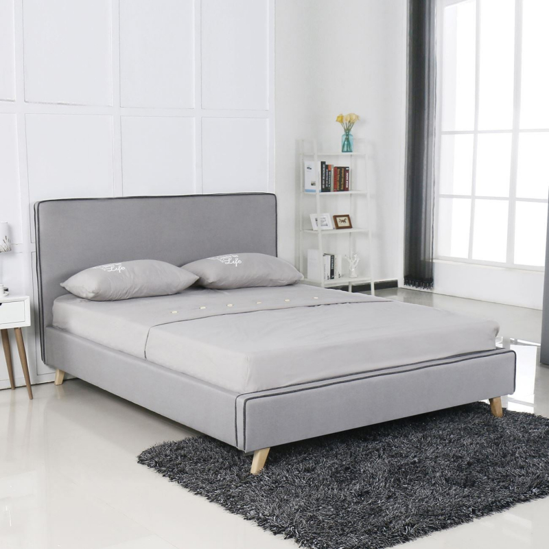 MORISSON Κρεβάτι Διπλό, για Στρώμα 160x200cm, Ύφασμα Ανοιχτό Γκρι 171x216x108cm