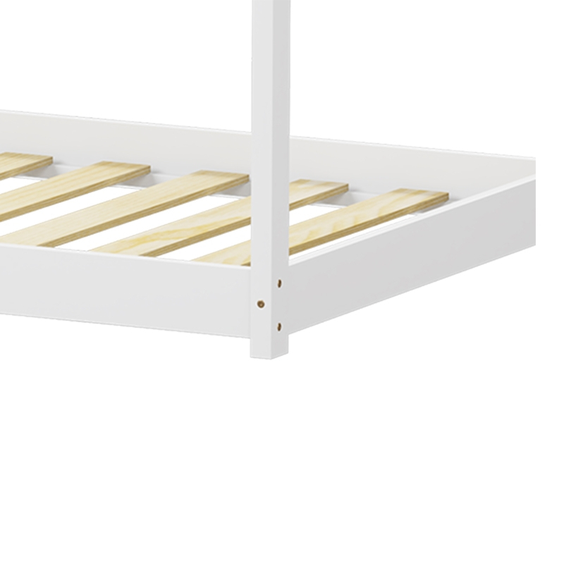 - Η στέγη του κρεβατιού προσθέτει ένα στοιχείο φαντασίας, μετατρέποντας το σε ένα μικρό καταφύγιο για τα παιδιά.