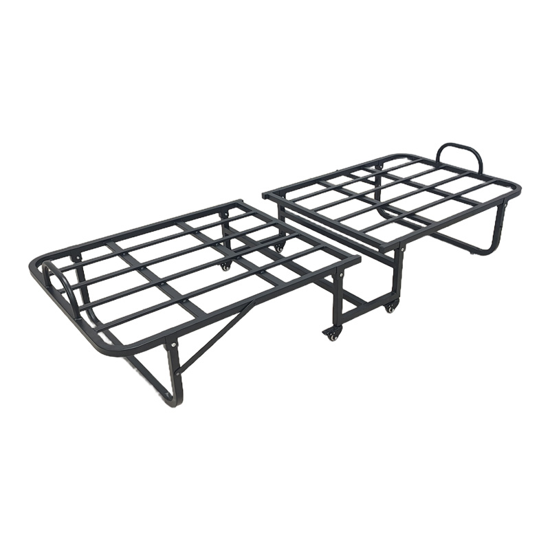 Ενα πρακτικό και ευέλικτο πτυσσόμενο ράντζο-κρεβάτι, ιδανικό για φιλοξενούμενους, μικρούς χώρους ή έκτακτες ανάγκες ύπνου. Ο στιβαρός μεταλλικός σκελετός σε σκούρο φινίρισμα εξασφαλίζει ανθεκτικότητα και σταθερότητα, ενώ ο έξυπνος μηχανισμός αναδίπλωσης επιτρέπει την εύκολη και γρήγορη αποθήκευση όταν δεν χρησιμοποιείται.