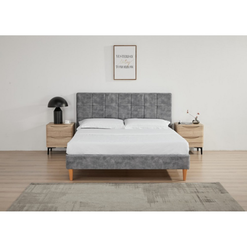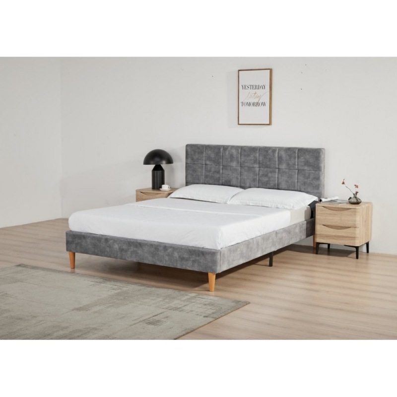 ROSSI ΚΡΕΒΑΤΙ ΔΙΠΛΟ ΥΦΑΣΜΑ ΓΚΡΙ 165X218X103cm