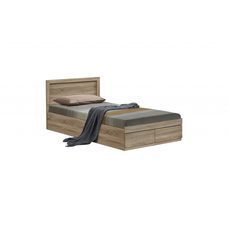 Αναβαθμίστε την κρεβατοκάμαρά σας με το Σετ "Olympus Sonoma", έναν συνδυασμό μοντέρνας αισθητικής και λειτουργικής σχεδίασης. Ιδανικό για όσους αναζητούν κομψότητα και μοντέρνες λύσεις ακομη και σε περιορισμένο χώρο. Το σετ αποτελείται απο 1 κρεβάτι, 1 κομοδίνο Τεχνικά χαρακτηριστικά κρεβατιού: Κατασκευή από μοριοσανίδα πάχους με επένδυση paper wood υψηλής ποιότητας, με αντοχή στην καταπόνηση, την φθορά και τον χρόνο. Προσφέρεται σε sonoma χρώμα Το κρεβάτι φέρει ξύλινες τάβλες που προσφέρουν έναν ξεκούραστο και ανανεωτικό ύπνο. Φέρει συρτάρια για την αποθήκευση των αντικειμένων σας. (42,5 x 39.4 x 18.7εκ) Συνδυάζεται με στρώμα διαστάσεων 100x200 (δεν συμπεριλαμβάνεται στη τιμή) Διάσταση προϊόντος: Μήκος: 105 εκ. Πλάτος: 205 εκ. Ύψος: 80 εκ. Τεχνικά χαρακτηριστικά κομοδίνου: Κατασκευή από μοριοσανίδα με επένδυση μελαμίνης υψηλής ποιότητας, με επένδυση paper wood με αντοχή στον χρόνο. Προσφέρεται σε sonoma απόχρωση Περιλαμβάνει δύο συρόμενα συρτάρια αποθήκευσης. Οι βάσεις των ποδιών φέρουν προστατευτικά πλαστικά καλύμματα για την αποφυγή γδαρσίματος του πατώματος. Διάσταση προϊόντος: Μήκος: 47,5 εκ. Πλάτος: 40,5 εκ. Ύψος: 40,5 εκ.