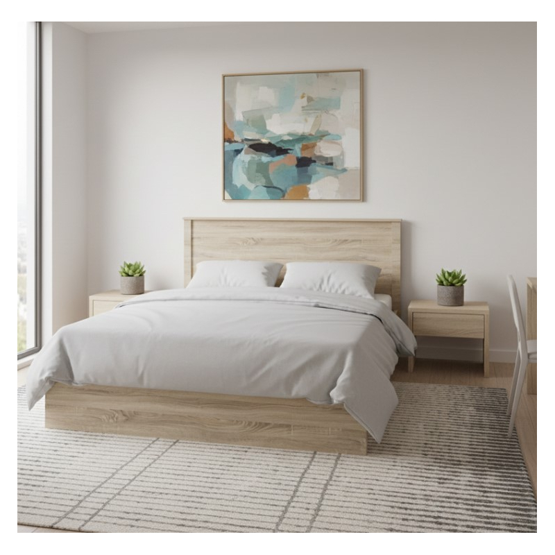 Το κρεβάτι Athos διαθέτει ένα κομψό, λιτό σχέδιο που ταιριάζει σε κάθε υπνοδωμάτιο. Η στιβαρή κατασκευή του εξασφαλίζει αντοχή και σταθερότητα καθιστώντας το ιδανική επιλογή για τη κρεβατοκάμαρα ή δωμάτια φιλοξενίας. Το ενσωματωμένο ψηλό κεφαλάρι προσφέρει άνεση και λειτουργικότητα, ενώ ο χρωματισμός του ταιριάζει αρμονικά με ποικίλα στυλ διακόσμησης. Τεχνικά χαρακτηριστικά Σταθερός σκελετός από υψηλής ποιότητας μοριοσανίδα με αντοχή στη φθορά και στο χρόνο. Φέρει ξύλινες τάβλες που εφάπτουν ακριβώς στο μέγεθος του κρεβατιού και θα σας προσφέρουν ξεκούραστο ύπνο. Κατάλληλο για στρώμα διαστάσεων 160x200 εκ. (δεν περιλαμβάνεται στη τιμή) Προσφέρεται σε sonoma χρώμα με ψηλό κεφαλάρι στην ιδια απόχρωση Διαστάσεις προϊόντος: Μήκος: 170 εκ Πλάτος: 206.5 εκ Υψος: 96 εκ