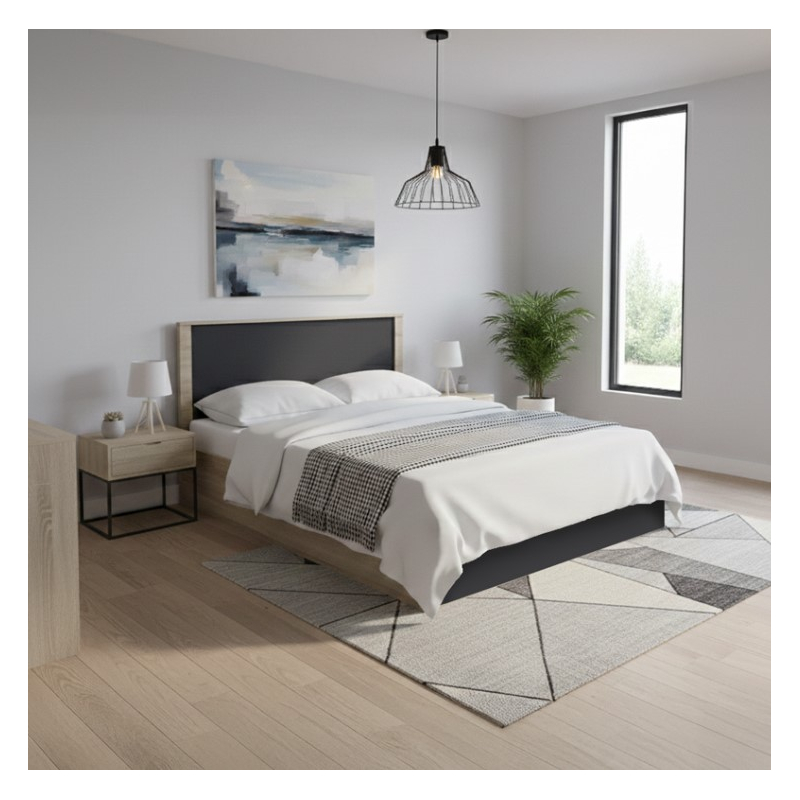 Το κρεβάτι Athos διαθέτει ένα κομψό, λιτό σχέδιο που ταιριάζει σε κάθε υπνοδωμάτιο. Η στιβαρή κατασκευή του εξασφαλίζει αντοχή και σταθερότητα καθιστώντας το ιδανική επιλογή για τη κρεβατοκάμαρα ή δωμάτια φιλοξενίας. Το ενσωματωμένο ψηλό κεφαλάρι προσφέρει άνεση και λειτουργικότητα, ενώ ο χρωματισμός του ταιριάζει αρμονικά με ποικίλα στυλ διακόσμησης. Τεχνικά χαρακτηριστικά Σταθερός σκελετός από υψηλής ποιότητας μοριοσανίδα με αντοχή στη φθορά και στο χρόνο. Φέρει ξύλινες τάβλες που εφάπτουν ακριβώς στο μέγεθος του κρεβατιού και θα σας προσφέρουν ξεκούραστο ύπνο. Κατάλληλο για στρώμα διαστάσεων 160x200 εκ. (δεν περιλαμβάνεται στη τιμή) Προσφέρεται σε υπέροχη διχρωμία sonoma- ανθρακί Διαστάσεις προϊόντος: Μήκος: 170 εκ Πλάτος: 206.5 εκ Υψος: 96 εκ