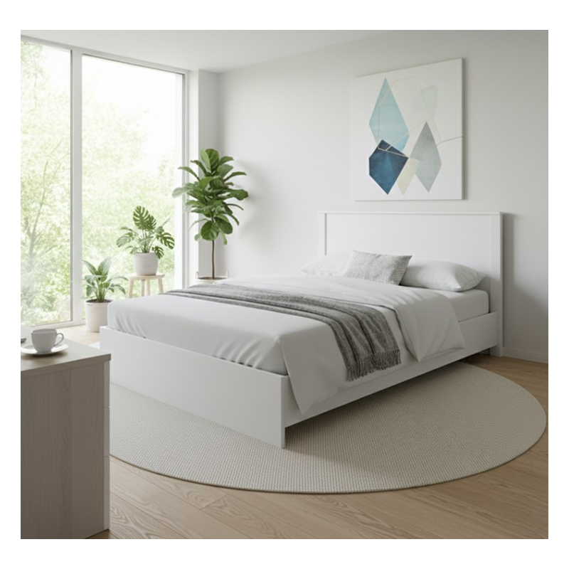Το κρεβάτι Athos διαθέτει ένα κομψό, λιτό σχέδιο που ταιριάζει σε κάθε υπνοδωμάτιο. Η στιβαρή κατασκευή του εξασφαλίζει αντοχή και σταθερότητα καθιστώντας το ιδανική επιλογή για τη κρεβατοκάμαρα ή δωμάτια φιλοξενίας. Το ενσωματωμένο ψηλό κεφαλάρι προσφέρει άνεση και λειτουργικότητα, ενώ ο χρωματισμός του ταιριάζει αρμονικά με ποικίλα στυλ διακόσμησης. Τεχνικά χαρακτηριστικά Σταθερός σκελετός από υψηλής ποιότητας μοριοσανίδα με αντοχή στη φθορά και στο χρόνο. Φέρει ξύλινες τάβλες που εφάπτουν ακριβώς στο μέγεθος του κρεβατιού και θα σας προσφέρουν ξεκούραστο ύπνο. Κατάλληλο για στρώμα διαστάσεων 140x200 εκ. (δεν περιλαμβάνεται στη τιμή) Προσφέρεται σε λευκό χρώμα με ψηλό κεφαλάρι στην ιδια απόχρωση Διαστάσεις προϊόντος: Μήκος: 150 εκ Πλάτος: 206.5 εκ Υψος: 96 εκ