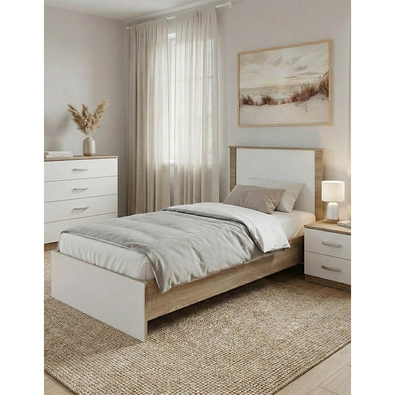 Σετ Κρεβατοκάμαρας Athos Sonoma Λευκό με Κρεβάτι 90x190εκ Σετ 3τεμ