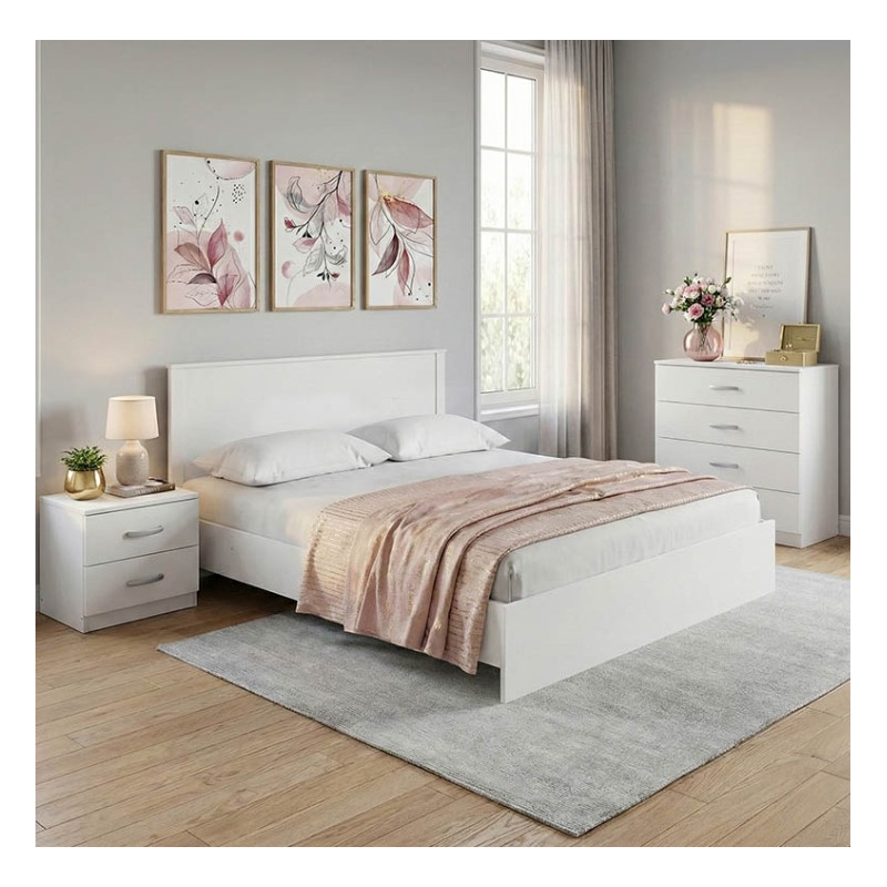 Ανανεώστε τον προσωπικό σας χώρο με ένα σετ κρεβατοκάμαρας που συνδυάζει την απαράμιλλη αισθητική του με τις καθαρές γραμμές του σύγχρονου design. Σχεδιασμένο για να προσφέρει ηρεμία και λειτουργικότητα, το σετ Athos αποτελεί την ιδανική επιλογή για κάθε μοντέρνο σπίτι. Τεχνικά χαρακτηριστικά Σταθερός σκελετός από υψηλής ποιότητας μοριοσανίδα με αντοχή στη φθορά και στο χρόνο. Φέρει ξύλινες τάβλες που εφάπτουν ακριβώς στο μέγεθος του κρεβατιού και θα σας προσφέρουν ξεκούραστο ύπνο. Κατάλληλο για στρώμα διαστάσεων 160x200 εκ. (δεν περιλαμβάνεται στη τιμή) Προσφέρεται σε λευκό χρώμα με ψηλό κεφαλάρι στην ιδια απόχρωση Διαστάσεις προϊόντος: Μήκος: 170 εκ Πλάτος: 206.5 εκ Υψος: 96 εκ Τεχνικά χαρακτηριστικά κομοδίνου: Σταθερός σκελετός από υψηλής ποιότητας μοριοσανίδα με αντοχή στη φθορά και στο χρόνο. Φέρει δύο συρόμενα συρτάρια αποθήκευσης. Προσφέρεται σε λευκό χρώμα Διάσταση προϊόντος: Μήκος: 48 εκ. Πλάτος: 40 εκ. Ύψος: 41,5 εκ. Τεχνικά χαρακτηριστικά συρταριέρας: Σταθερός σκελετός από υψηλής ποιότητας μοριοσανίδα με αντοχή στη φθορά και στο χρόνο. Φέρει 4 συρόμενα συρτάρια αποθήκευσης. Προσφέρεται σε λευκό χρώμα Διάσταση προϊόντος: Μήκος: 80 εκ. Πλάτος: 40 εκ. Ύψος: 79 εκ.