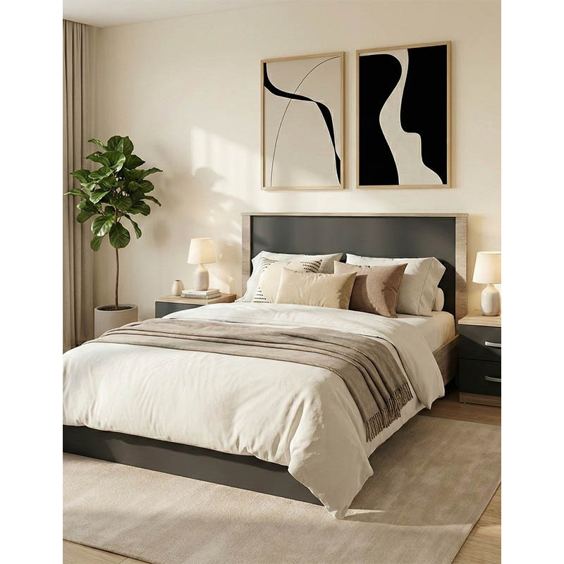 Σετ Κρεβατοκάμαρας Athos Sonoma Ανθρακί με Κρεβάτι 140x200εκ Σετ 3τεμ