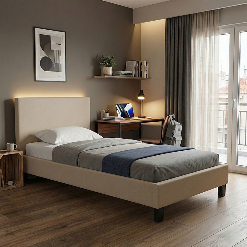 Ψάχνετε να δημιουργήσετε έναν χώρο που αποπνέει ηρεμία, στιλ και διακριτική πολυτέλεια; Το κρεβάτι Nevil είναι η ιδανική επιλογή για να αναβαθμίσετε κάθε υπνοδωμάτιο, προσφέροντας έναν άψογο συνδυασμό μοντέρνου design και απόλυτης λειτουργικότητας. Οι καθαρές, μινιμαλιστικές γραμμές του, σε συνδυασμό με το πλούσιο, τετράγωνο κεφαλάρι, το καθιστούν ένα έπιπλο-δήλωση που ξεφεύγει από τα συνηθισμένα. Επενδυμένο στην πιο ζεστή και διαχρονική απόχρωση του μπεζ, αυτό το κρεβάτι υπόσχεται όχι μόνο έναν ποιοτικό ύπνο, αλλά και έναν φωτεινό και φιλόξενο χώρο που θα λατρέψετε να περνάτε τον χρόνο σας.