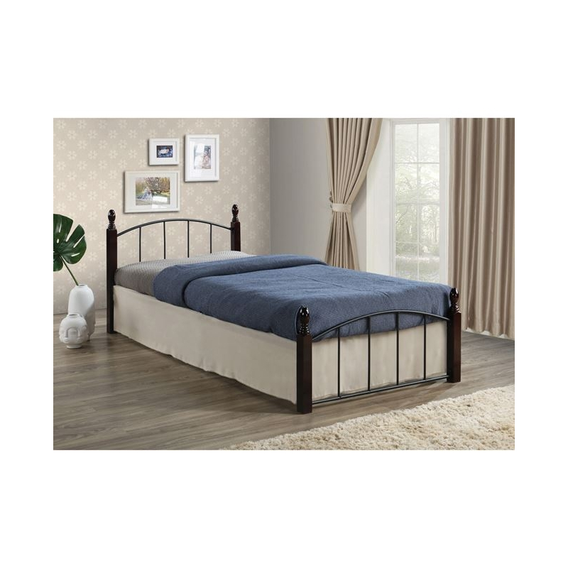 ARAGON Kρεβάτι Ημίδιπλο, για Στρώμα 120x200cm, Μέταλλο Βαφή Μαύρο - Ξύλο Kαρυδί 125x210x76cm