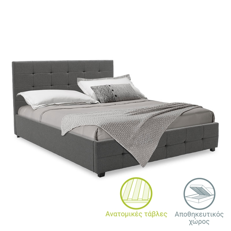 Κρεβάτι Roi pakoworld διπλό 160x200 ύφασμα ανθρακί + αποθηκευτικό χώρο