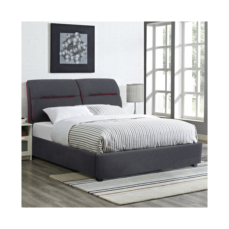 ΚΡΕΒΑΤΙ KENDRA ΔΙΠΛΟ ΓΙΑ ΣΤΡΩΜΑ 150x200 εκ. ΜΕ ΥΦΑΣΜΑ ΓΚΡΙ ΚΑΙ ΚΟΚΚΙΝΗ ΡΙΓΑ HM562