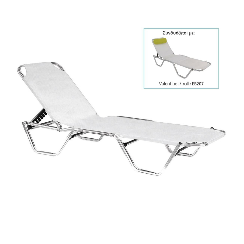 CRETA Ξαπλώστρα Αλουμινίου Textilene Άσπρο, Στοιβαζόμενη