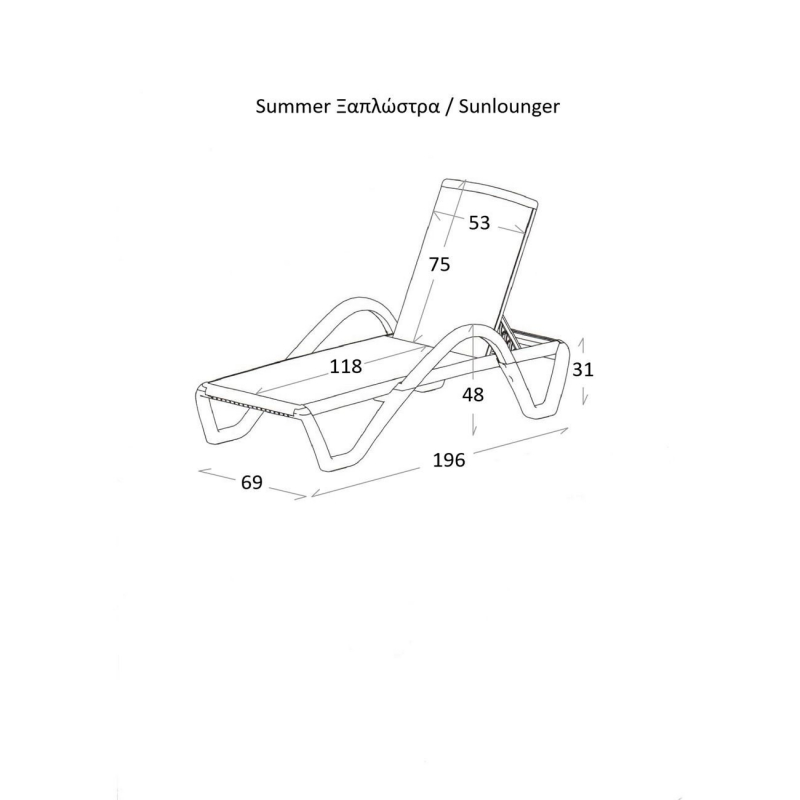 Ε3382 SUMMER K/D Ξαπλώστρα (με μπράτσα) ALU, PP Άσπρο/Textilene Γκρι