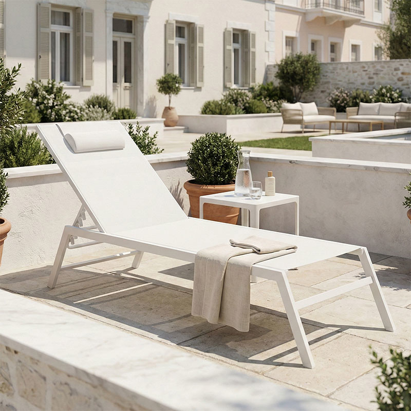 Ξαπλώστρα Kiara pakoworld αλουμίνιο λευκό-textilene μπεζ