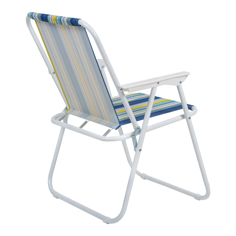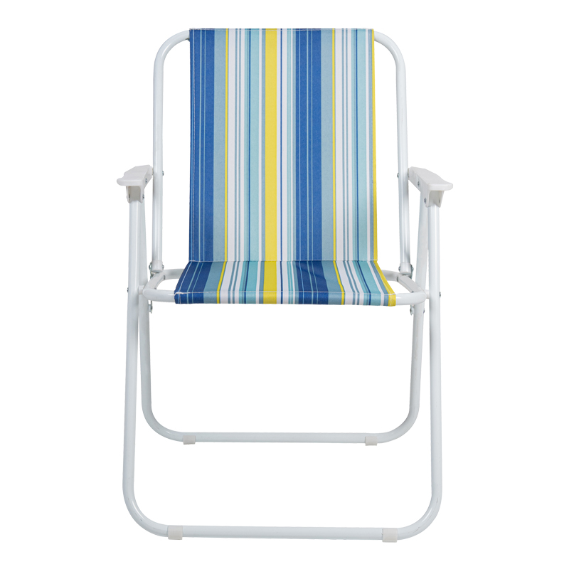 Ετοιμαστείτε για ατελείωτες στιγμές χαλάρωσης με αυτή την πρακτική και κομψή πτυσσόμενη καρέκλα. Κατασκευασμένη για να σας ακολουθεί παντού, είναι η ιδανική λύση για τις εξορμήσεις σας στην παραλία, στο κάμπινγκ ή για να απολαύσετε τον καφέ σας στον κήπο. Τεχνικά χαρακτηριστικά: Σκελετός κατασκευασμένος από ατσάλι εξαιρετικής ανθεκτικότητας σε λευκό χρώμα. Επένδυση με ύφασμα polyester σε ριγέ χρώμα-συνδυασμό μπλε-κίτρινου-λευκού. Πτυσσόμενη, για εύκολη αποθήκευση και μεταφορά. Είναι ιδανική για να την πάρετε μαζί σας στην παραλία, το κάμπινγκ ή το εξοχικό. Διαστάσεις προϊόντων: Μήκος: 53 εκ. Πλάτος: 56 εκ. Ύψος: 73 εκ.