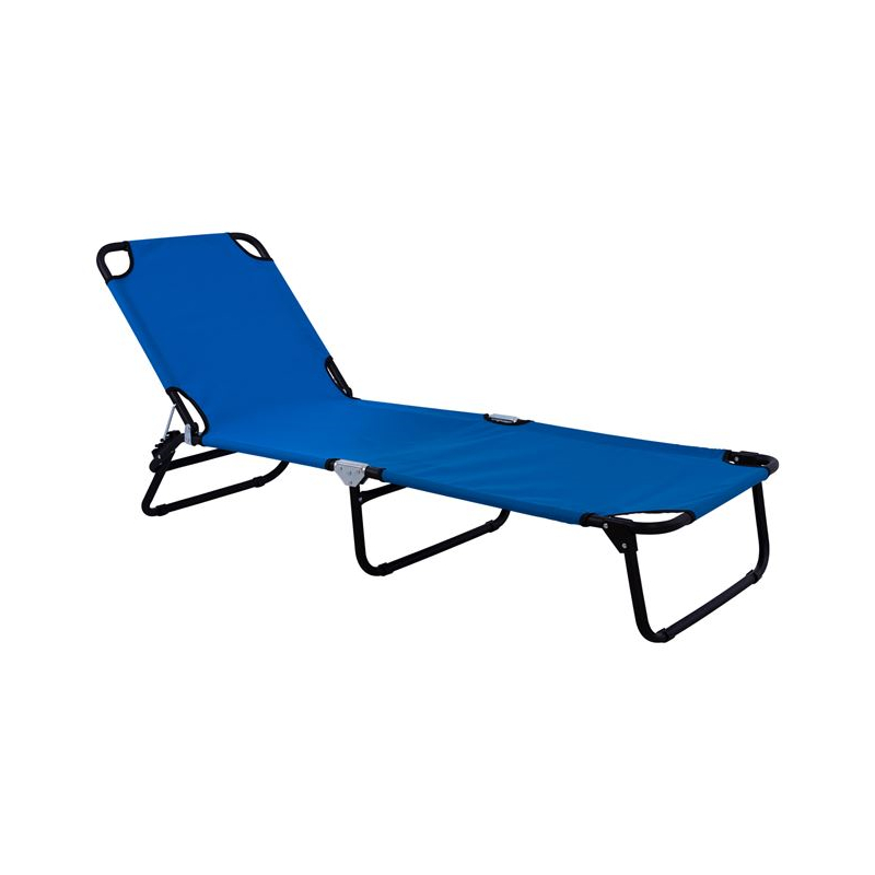 Ξαπλώστρα παραλίας από μαύρο μεταλλικό σκελετό και ύφασμα σε μπλε χρώμα, με ψηλή ανακλινόμενη πλάτη 3 θέσεων.