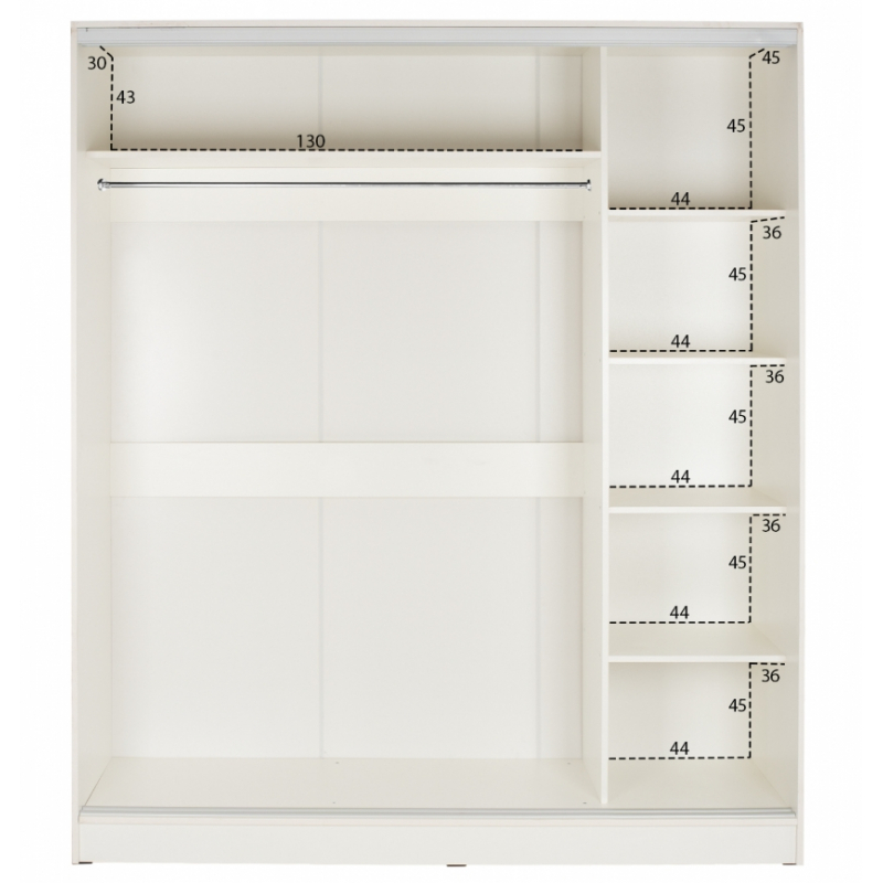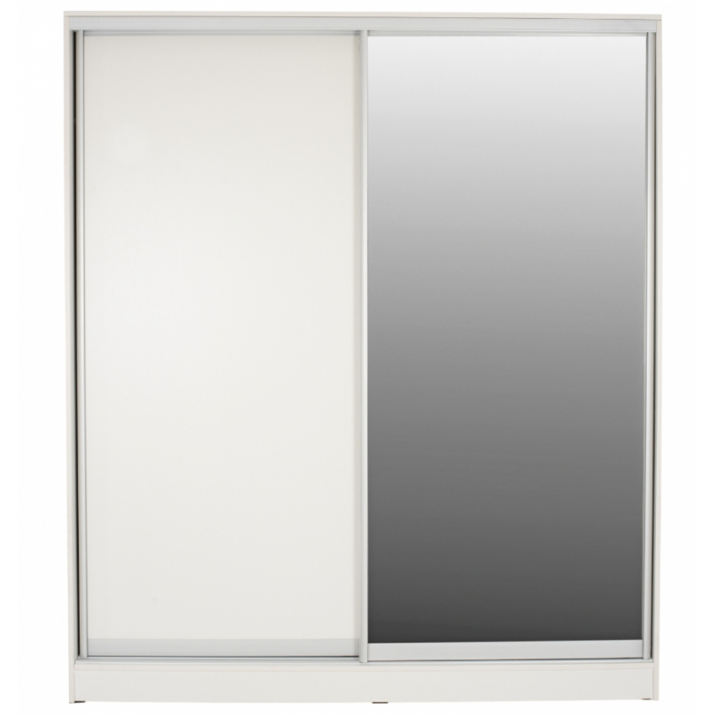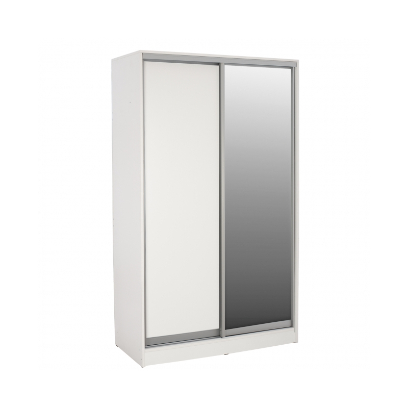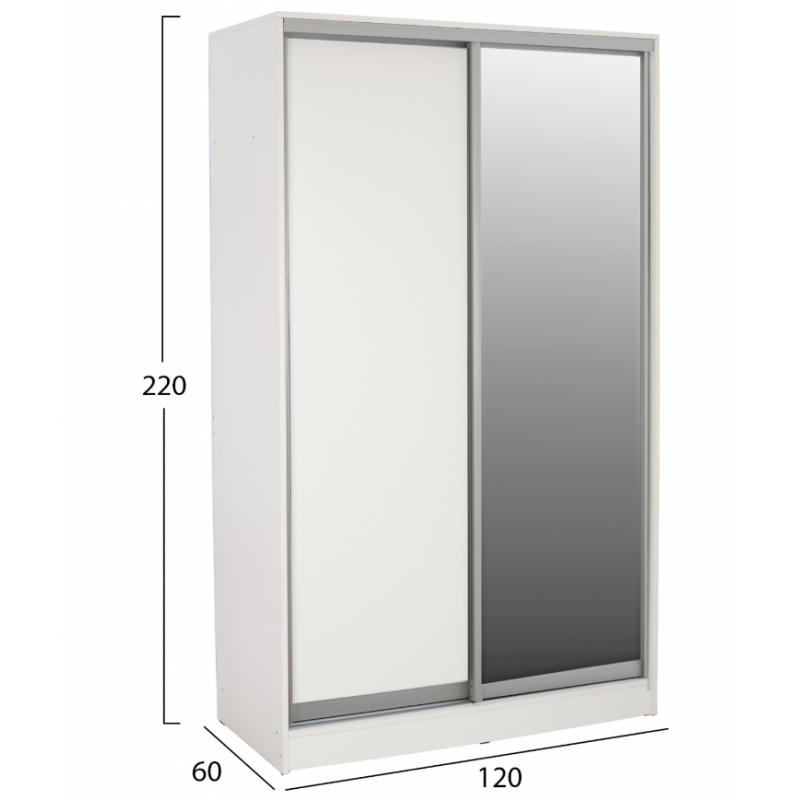 Ντουλάπα δίφυλλη, σε λευκή απόχρωση, 120x60x220 εκ. Οργανώστε και αποθηκεύστε τα ρούχα σας στην ευρύχωρη ντουλάπα και με 2 συρόμενες πόρτες για ακόμη περισσότερη εξοικονόμηση χώρου. Η ντουλάπα υπνοδωματίου διαθέτει λιτό σχέδιο και το εσωτερικό της περιλαμβάνει στην αριστερή πλευρά στο πάνω ράφι, ένα βαθύ ράφι, πλήρως κατάλληλο για αποθήκευση κλινοσκεπασμάτων. Το υπόλοιπο τμήμα διαθέτει μια ράγα κρεμάσματος ρούχων, παρέχοντας άπλετο χώρο για την οργάνωση των αγαπημένων σας ρούχων. Στη δεξιά πλευρά υπάρχουν ράφια, που δημιουργούν 5 ευρύχωρα ράφια για αποθήκευση. Κατασκευασμένη από εξαιρετικής ποιότητας μελαμίνη, που καθιστά αυτό το έπιπλο ανθεκτικό, σταθερό και στιβαρό και με αντοχή στο χρόνο και τη φθορά. Ιδιαίτερα χαρακτηριστικά του προϊόντος είναι το ευρύχωρο βάθος της, 60 εκ και πως διαθέτει στο ένα εξωτερικό φύλλο της, ολόσωμο καθρέπτη. Διαστάσεις: 120x60x220 εκ. Διαστάσεις Ραφιού: 70x45x35 εκ. Ύψος Κρέμασης: 158 εκ. Διαστάσεις Ραφιών: 45x45x40 εκ. (x5)