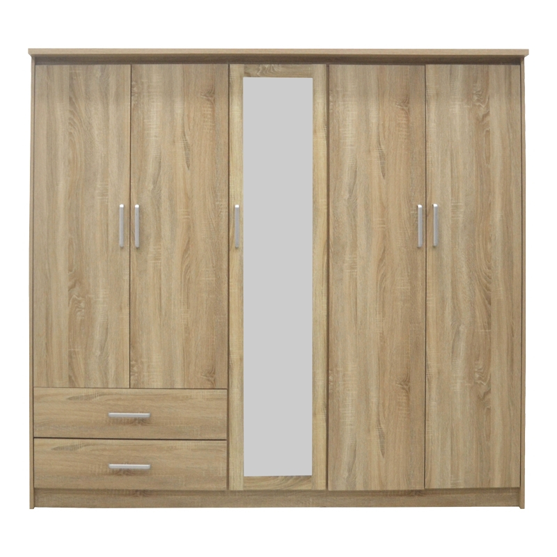 Ντουλάπα ρούχων πεντάφυλλη OLYMPUS pakoworld σε sonoma απόχρωση 198x57x183εκ