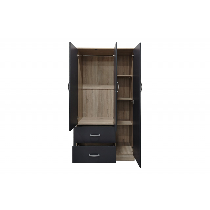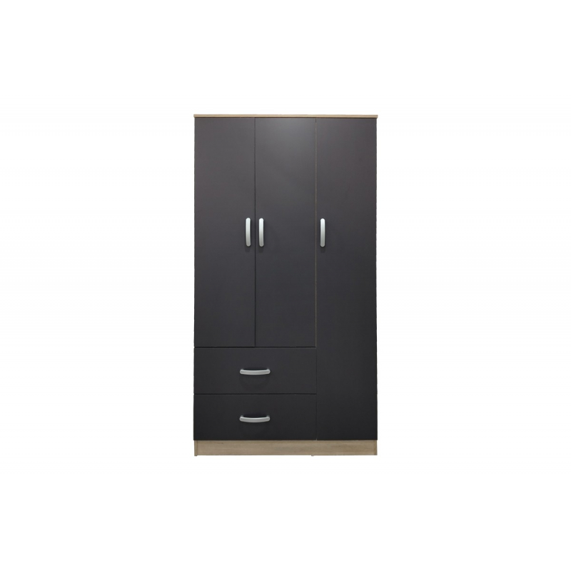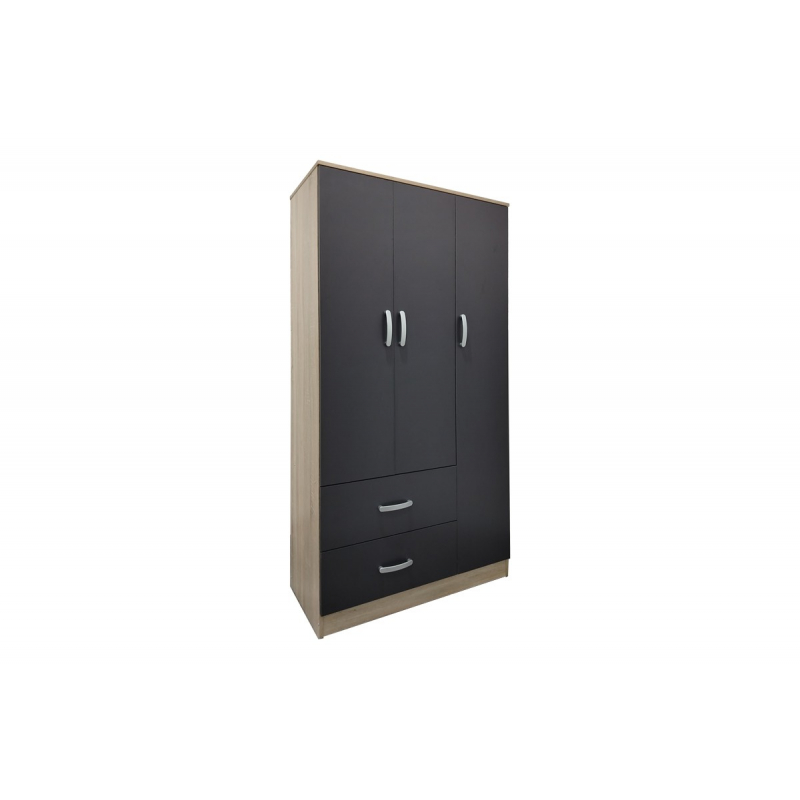 Ντουλάπα τρίφυλλη με 2 συρτάρια Lego pakoworld σε sonoma-ανθρακί απόχρωση 90x42x180εκ