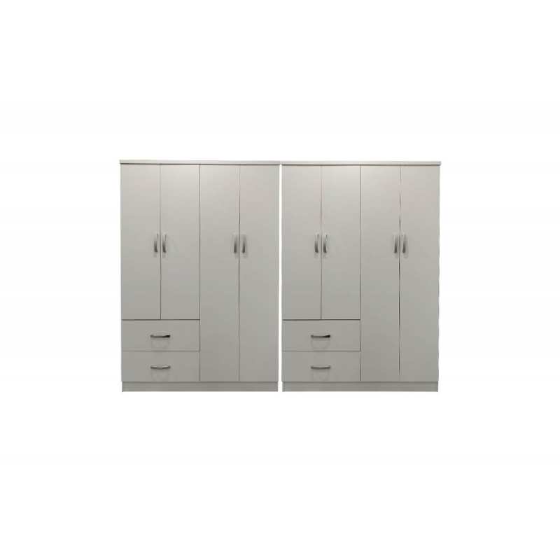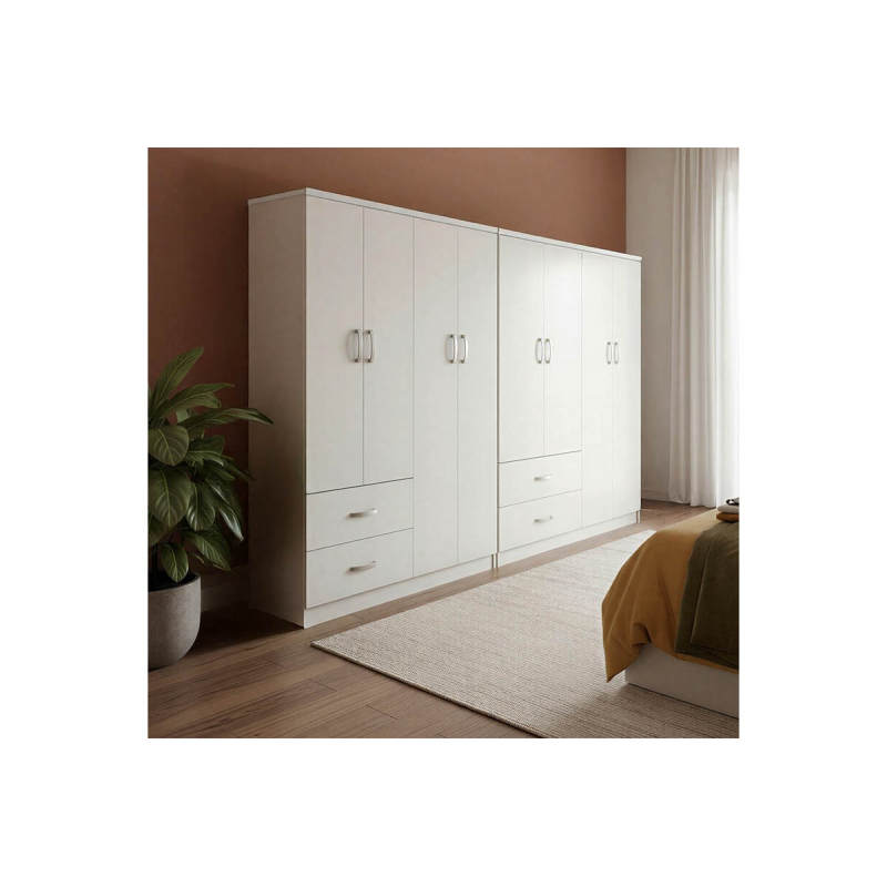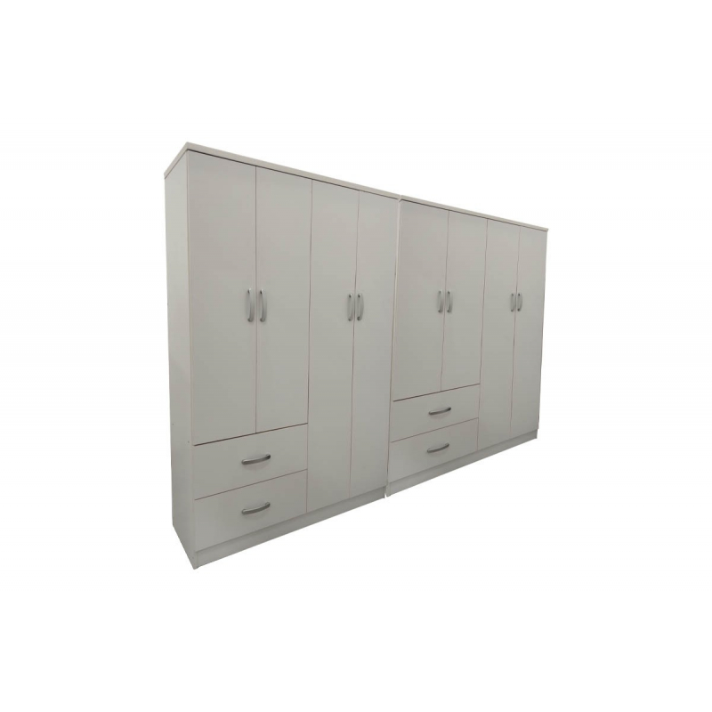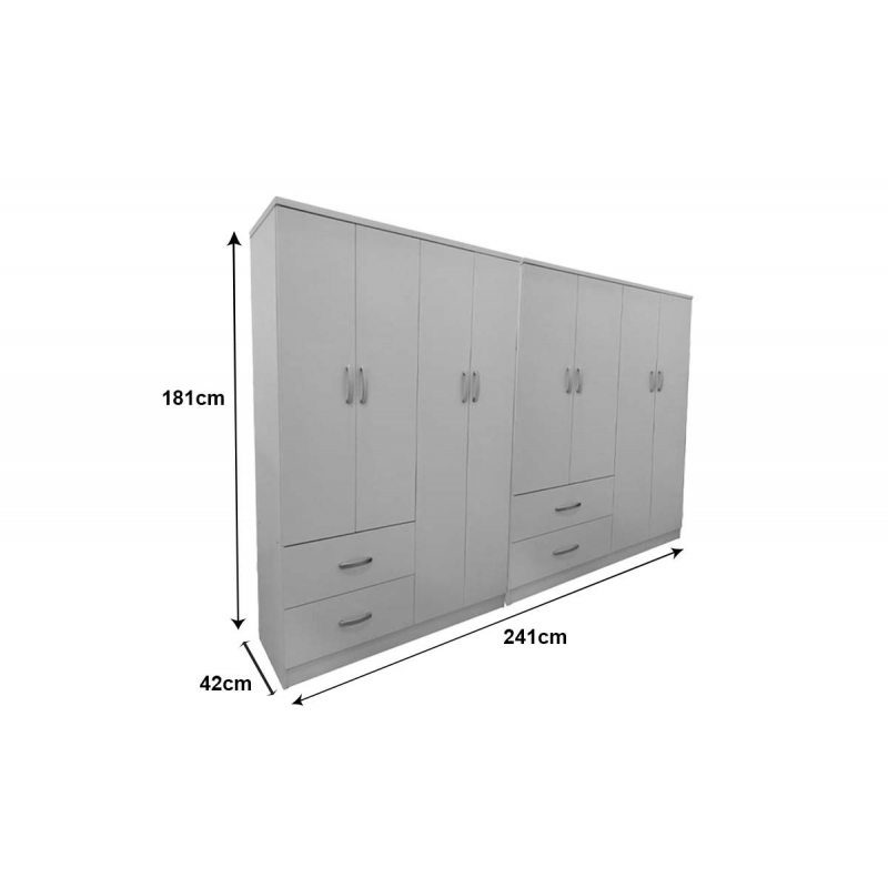 Η μοντέρνα και πρακτική ντουλάπα Lego είναι η ιδανική λύση για να διατηρήσετε τα ρούχα και τα αξεσουάρ σας οργανωμένα και σε τάξη. Ο προσεγμένος σχεδιασμός της προσδίδει μια αίσθηση κομψότητας και πρακτικότητας σε κάθε χώρο. Τεχνικά χαρακτηριστικά: Σκελετός κατασκευασμένος από μοριοσανίδα με επένδυση μελαμίνης υψηλής ποιότητας, με αντοχή στην καταπόνηση, την φθορά και τον χρόνο. Περιλαμβάνει οχτώ πόρτες, εσωτερικά φέρει ράγα για την κρέμαση των ρούχων και οχτώ ράφια για την οργάνωση των ρούχων και αξεσουάρ. Στο κάτω μέρος φέρει τεσσερα πρακτικά συρτάρια που προσφέρουν εύκολα προσβάσιμο χώρο αποθήκευσης για ρούχα κια μικροαντικείμενα. Αποτελείται από δύο ντουλάπες που μπορούν να στηθούν και ανεξάρτητα. Προσφέρεται σε λευκή απόχρωση. Διάσταση προϊόντος: Μήκος: 241 εκ. Πλάτος: 42 εκ. Ύψος: 181 εκ.