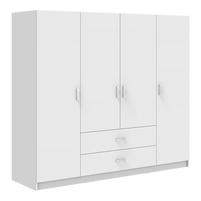 Αν νιώθετε ότι ο αποθηκευτικός σας χώρος δεν είναι ποτέ αρκετός, τότε η ντουλάπα Royal είναι φτιαγμένη για εσάς. Με κλασικό σχεδιασμό και πολλαπλούς αποθηκευτικούς χώρους, είναι ιδανική για όσους αναζητούν μια οργανωμένη, κομψή και πρακτική λύση για την αποθήκευση των αντικειμένων τους. Τεχνικά χαρακτηριστικά: Κατασκευασμένη από μοριοσανίδα υψηλής ποιότητας με επένδυση μελαμίνης, που προσφέρει ανθεκτικότητα και μεγάλη διάρκεια ζωής. Διατίθεται σε χρώμα λευκό. Διαθέτει τέσσερις ανοιγόμενες πόρτες και δύο συρτάρια. Το εσωτερικό περιλαμβάνει μεταλλική βέργα για κρέμασμα ρούχων και πολλαπλά ράφια. Περιλαμβάνει επιπλέον τετράφυλλο επάνω ντουλάπι, προσφέροντας ακόμη περισσότερο αποθηκευτικό χώρο. Διαστάσεις προϊόντος: Μήκος: 200 εκ. Πλάτος: 58 εκ. Ύψος: 230 εκ