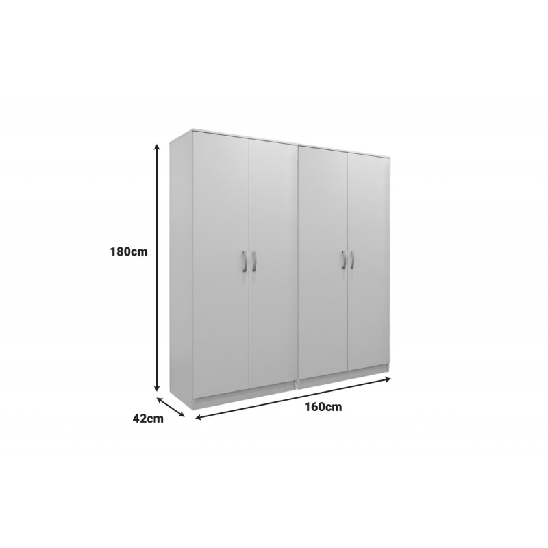 Αναβαθμίστε τον αποθηκευτικό σας χώρο με αυτή την μοντέρνα και λειτουργική ντουλάπα σε χρώμα που ταιριάζει σε κάθε διακόσμηση. Η Lego είναι η ιδανική λύση για όσους αναζητούν οργάνωση και στυλ στον χώρο τους. Τεχνικά χαρακτηριστικά: Σκελετός κατασκευασμένος από μοριοσανίδα με επένδυση μελαμίνης υψηλής ποιότητας, με αντοχή στην καταπόνηση, την φθορά και τον χρόνο. Περιλαμβάνει τεσσερις πόρτες, εσωτερικά φέρει ράγα για κρεμάστρες και ράφια για την αποθήκευση ρούχων και αξεσουάρ. Αποτελείται από δύο ντουλάπες που μπορούν να στηθούν και ανεξάρτητα. Προσφέρεται σε λευκή απόχρωση. Διάσταση προϊόντος: Μήκος: 160 εκ. Πλάτος: 42 εκ. Ύψος: 180 εκ.