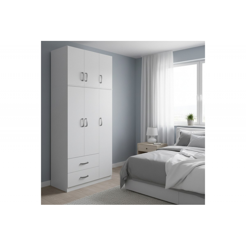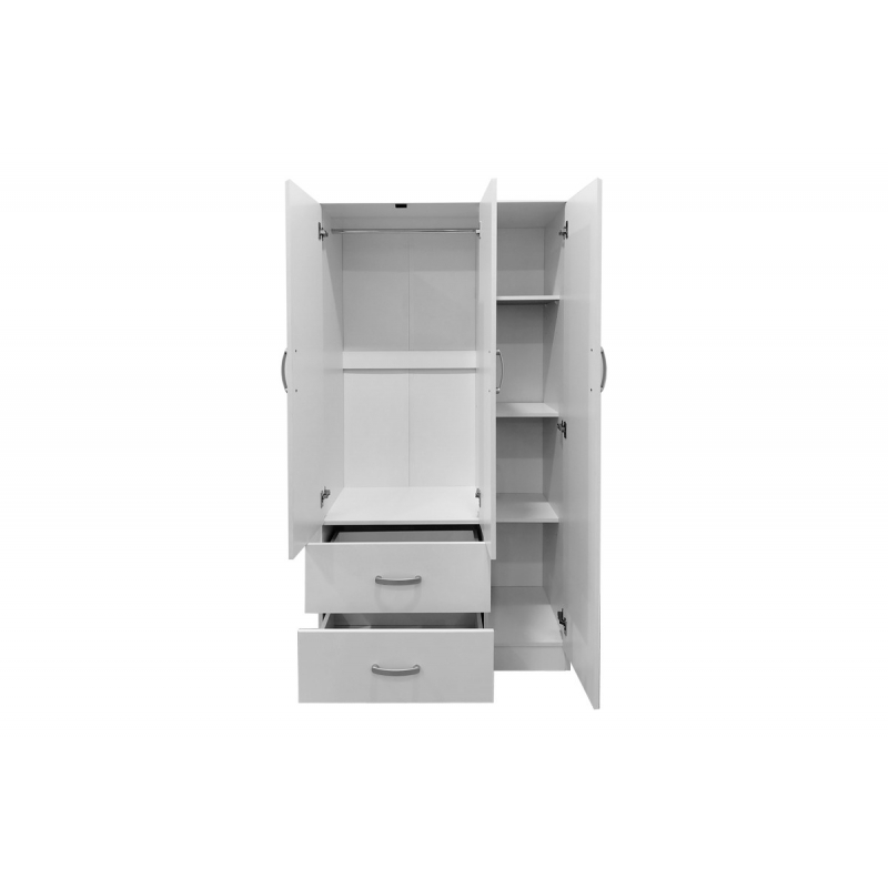 Μια λειτουργική και κομψή επιλογή για την αποθήκευση και οργάνωση των ρούχων σας είναι η ντουλάπα ρούχων Lego. Διαθέτει ράγα κρέμασης ρούχων, που σας επιτρέπει να οργανώσετε και να κρεμάσετε τα ρούχα σας, ενώ παράλληλα περιλαμβάνει δύο συρτάρια που παρέχουν επιπλέον αποθηκευτικό χώρο για τα προσωπικά σας αντικείμενα. Τεχνικά χαρακτηριστικά: Σκελετός κατασκευασμένος από μοριοσανίδα με επένδυση μελαμίνης υψηλής ποιότητας, με αντοχή στην καταπόνηση, την φθορά και τον χρόνο. Περιλαμβάνει τρεις πόρτες, εσωτερικά φέρει ράγα για κρεμάστρες και ράφια ενώ κάτω φέρει δύο μεγάλα συρτάρια για την αποθήκευση ρούχων και αξεσουάρ. Στο πάνω μέρος φέρει πατάρι που εξυπηρετεί στην μεγαλύτερη οργάνωση και αποθήκευση. Προσφέρεται σε λευκή απόχρωση. Διάσταση προϊόντος: Μήκος: 90 εκ. Πλάτος: 42 εκ. Ύψος: 240 εκ.