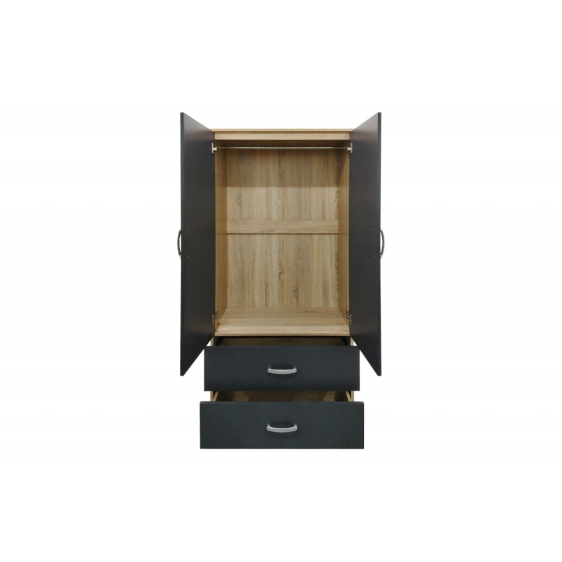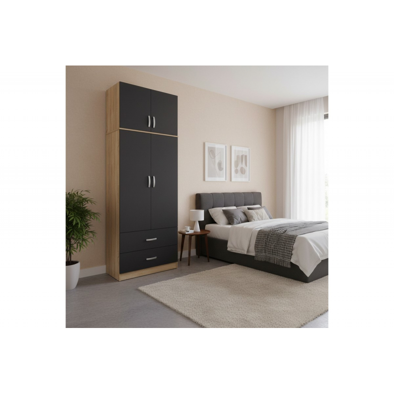 Αναβαθμίστε τον αποθηκευτικό σας χώρο με αυτή την μοντέρνα και λειτουργική ντουλάπα σε χρώμα που ταιριάζει σε κάθε διακόσμηση. Η Lego είναι η ιδανική λύση για όσους αναζητούν οργάνωση και στυλ στον χώρο τους. Τεχνικά χαρακτηριστικά: Σκελετός κατασκευασμένος από μοριοσανίδα με επένδυση μελαμίνης υψηλής ποιότητας, με αντοχή στην καταπόνηση, την φθορά και τον χρόνο. Περιλαμβάνει δύο πόρτες, εσωτερικά φέρει ράγα για κρεμάστρες ενώ κάτω φέρει δύο μεγάλα συρτάρια για την αποθήκευση ρούχων και αξεσουάρ. Στο πάνω μέρος φέρει πατάρι που εξυπηρετεί στην μεγαλύτερη οργάνωση και αποθήκευση. Προσφέρεται σε oak-ανθρακί απόχρωση. Διάσταση προϊόντος: Μήκος: 80 εκ. Πλάτος: 42 εκ. Ύψος: 240 εκ.