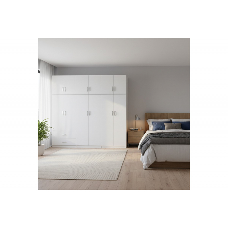 Αναβαθμίστε τον αποθηκευτικό σας χώρο με την εξάφυλλη Ντουλάπα με Πατάρι Lego, μια λειτουργική και κομψή λύση που συνδυάζει άφθονο χώρο και σύγχρονο design. Τεχνικά χαρακτηριστικά: Σκελετός κατασκευασμένος από μοριοσανίδα με επένδυση μελαμίνης υψηλής ποιότητας, με αντοχή στην καταπόνηση, την φθορά και τον χρόνο. Μοντέρνα Αισθητική: Καθαρό, λιτό design με ομαλές επιφάνειες και διακριτικά μεταλλικά χερούλια που ταιριάζει αρμονικά σε κάθε υπνοδωμάτιο ή χώρο φιλοξενίας. Περιλαμβάνει εξι πόρτες, εσωτερικά φέρει ράγα για κρεμάστρες ενώ κάτω φέρει δύο μεγάλα συρτάρια για την αποθήκευση ρούχων και αξεσουάρ και με την προσθήκη παταριού, προσφέρει έξτρα αποθήκευση για ρούχα, λευκά είδη αλλά και εποχιακά αντικείμενα. Αποτελούνται απο τρεις ντουλάπες και τρια πατάρια που μπορούν να στηθούν και ανεξάρτητα. Προσφέρεται σε λευκή απόχρωση. Διάσταση προϊόντος: Μήκος: 240 εκ. Πλάτος: 42 εκ. Ύψος: 240 εκ.