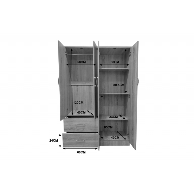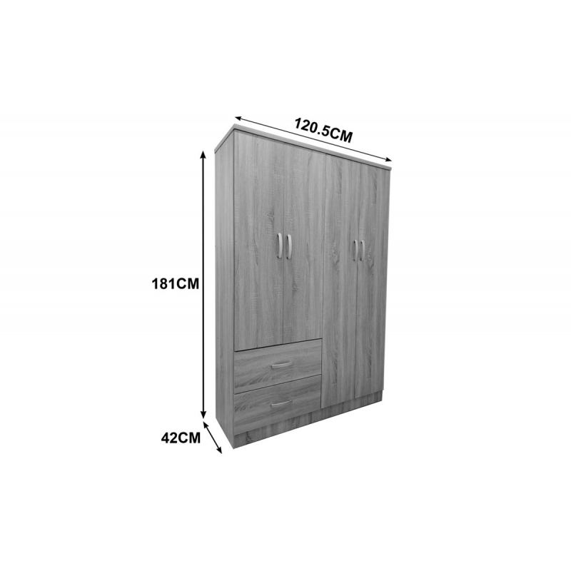 Η μοντέρνα και πρακτική ντουλάπα Lego είναι η ιδανική λύση για να διατηρήσετε τα ρούχα και τα αξεσουάρ σας οργανωμένα και σε τάξη. Ο προσεγμένος σχεδιασμός της προσδίδει μια αίσθηση κομψότητας και πρακτικότητας σε κάθε χώρο. Τεχνικά χαρακτηριστικά: Σκελετός κατασκευασμένος από μοριοσανίδα με επένδυση μελαμίνης υψηλής ποιότητας, με αντοχή στην καταπόνηση, την φθορά και τον χρόνο. Περιλαμβάνει τέσσερις πόρτες, εσωτερικά φέρει ράγα για την κρέμαση των ρούχων και τέσσερα ράφια για την οργάνωση των ρούχων και αξεσουάρ. Στο κάτω μέρος φέρει δύο πρακτικά συρτάρια που προσφέρουν εύκολα προσβάσιμο χώρο αποθήκευσης για ρούχα κια μικροαντικείμενα. Προσφέρεται σε sonoma απόχρωση. Διάσταση προϊόντος: Μήκος: 120.5 εκ. Πλάτος: 42 εκ. Ύψος: 181 εκ.