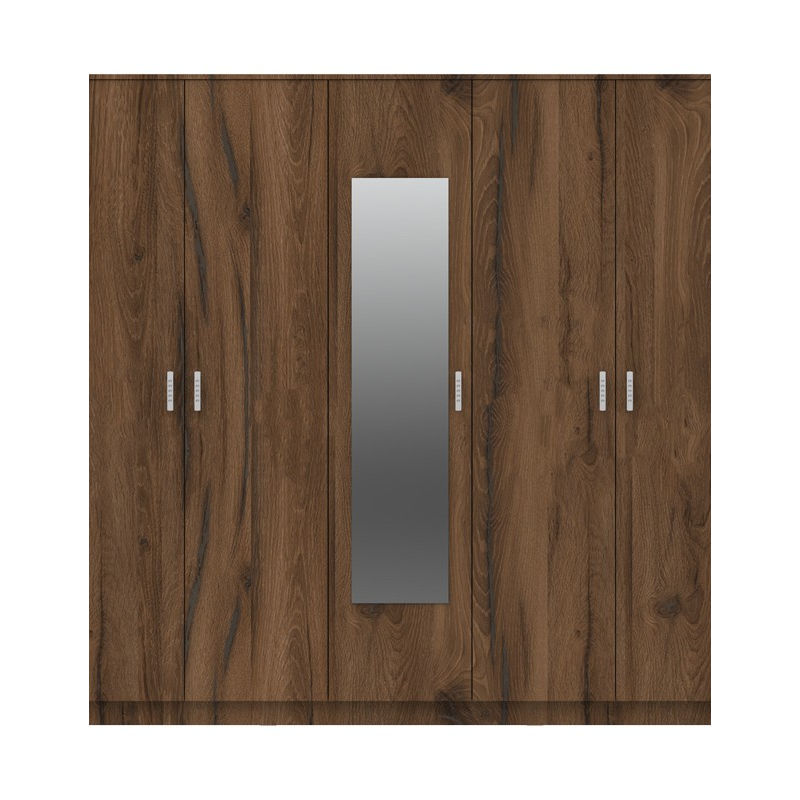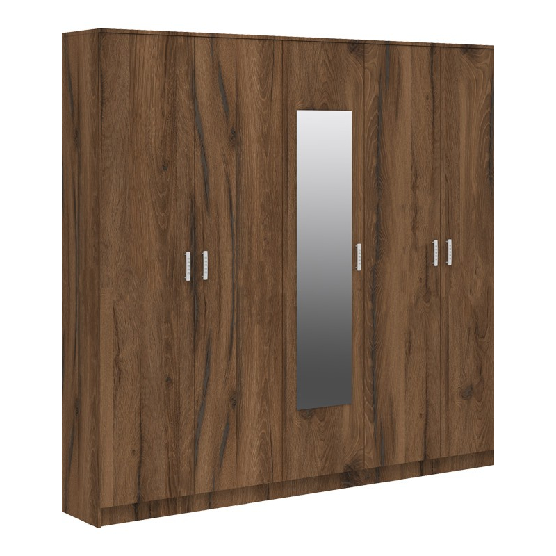 Ντουλάπα πεντάφυλλη με καθρέφτη Luna pakoworld καρυδί-oak 220x52x200εκ