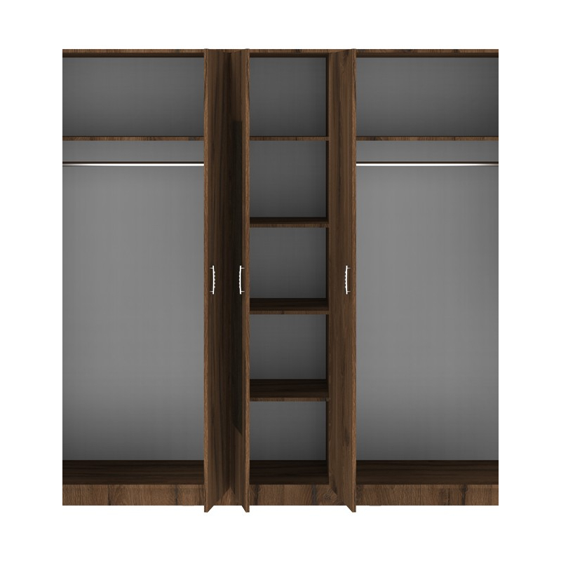 Εάν ψάχνετε μια μεγάλη ντουλάπα για να οργανώσετε και να τακτοποιήσετε όλα σας τα ρούχα και αξεσουάρ η ντουλάπα Luna είναι η ιδανική επιλογή. Κλασσική γραμμή με καθρέπτη και πολλαπλούς χώρους αποθήκευσης την καθιστούν απαραίτητη για κάθε χώρο. Τεχνικά χαρακτηριστικά: Κατασκευασμένη από υψηλής ποιότητας μοριοσανίδα με επενδυση μελαμίνης , με αντοχή στην καταπόνηση και στον χρόνο. Προσφέρεται σε χρώμα καρυδί-oak με υπέροχα νερά που απογειώνει το αισθητικό αποτέλεσμα. Με πέντε ανοιγόμενα φύλλα και ενσωματωμένο καθρέπτη. Στο εσωτερικό περιλαμβάνει δύο μεταλλικες βέργες για κρεμάστρες και ράφια στη μέση για την καλύτερη δυνατή αξιοποίηση του χώρου Διαστάσεις προϊόντος: Μήκος: 220 εκ. Πλάτος: 52 εκ. Ύψος: 200 εκ.