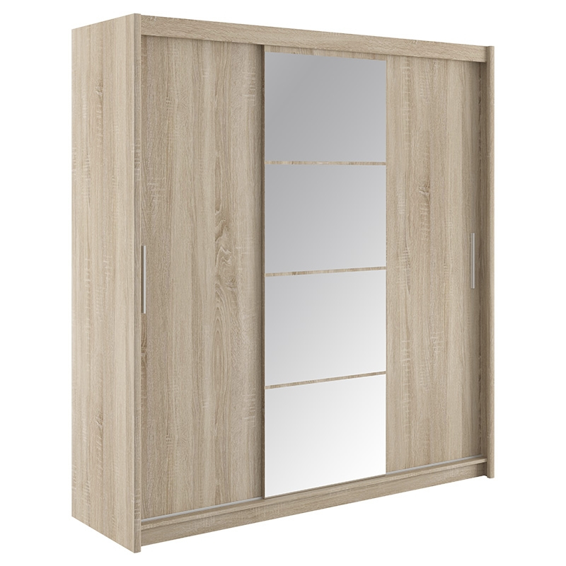 Ντουλάπα ρούχων Elodie pakoworld τρίφυλλη καθρέπτης συρόμενη sonoma 200x61x216εκ