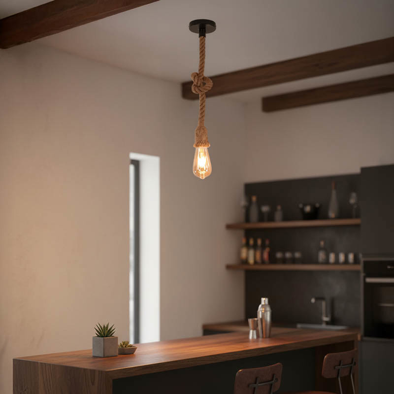 Φωτιστικό οροφής Ropily pakoworld φυσικό μέταλλο-σχοινί Φ1x100εκ