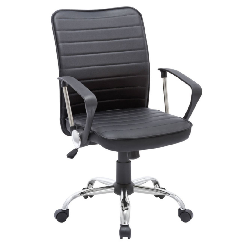 BF3450 Πολυθρόνα Γραφείου Μέταλλο Βάση Χρώμιο, Pvc Μαύρο 60x62x93/103cm