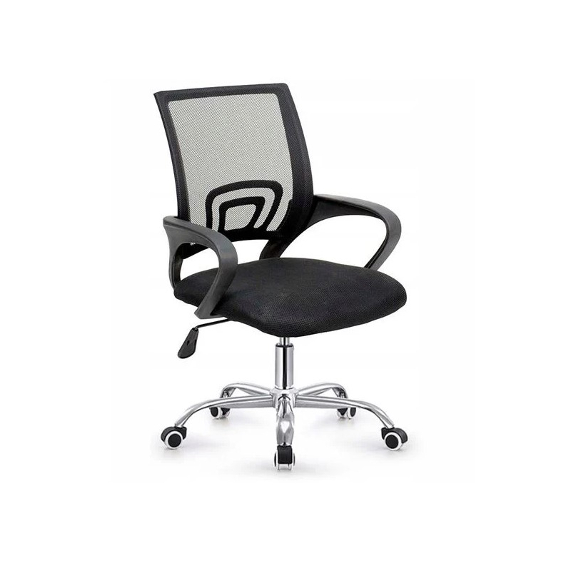 BF2101-W Πολυθρόνα Γραφείου χωρίς Ανάκλιση, Μέταλλο Χρώμιο Mesh Μαύρο 58x55x83/93cm