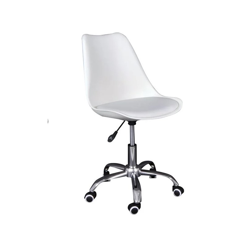 MARTIN-W Καρέκλα Γραφείου, Βάση Χρώμιο, PP & Pu Άσπρο, Μονταρισμένη Ταπετσαρία 52x52x80/93cm