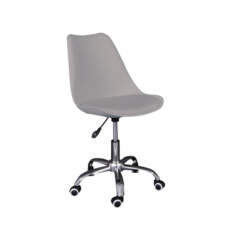 MARTIN-W Καρέκλα Γραφείου, Βάση Χρώμιο, PP & Pu Γκρι, Μονταρισμένη Ταπετσαρία 52x52x80/93cm