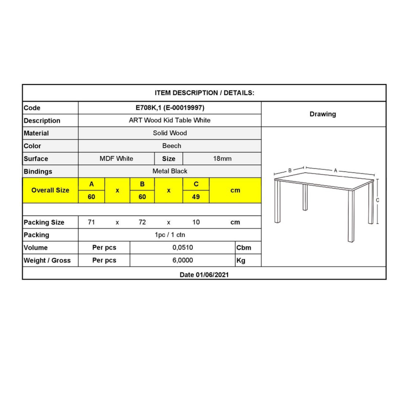 ΕΚ708,1 - ART Wood Kid Τραπέζι 60x60/H49cm Άσπρο