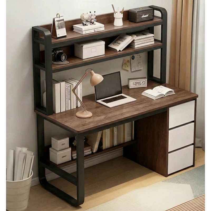 01.ΕΟ402,2 ΓΡΑΦΕΙΟ 4 Ράφια - Βάση Η/Υ - Συρταρωτή Θέση Πληκτρολογίου, Μέταλλο Μαύρο, Φυσικό 100x48x73/118cm 48,92 €